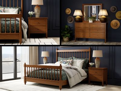 The Adams Bedroom Set combines rustic charm with refined craftsmanship, offering a cohesive and timeless look for your space. Finished in a warm brown bark tone, each piece is crafted from solid pine for lasting durability and character. The bed features turned vertical posts on both the headboard and footboard, adding subtle classic detailing. Paired with the spacious dresser and mirror, and a thoughtfully designed nightstand, this set brings both style and functionality to your room.Read More