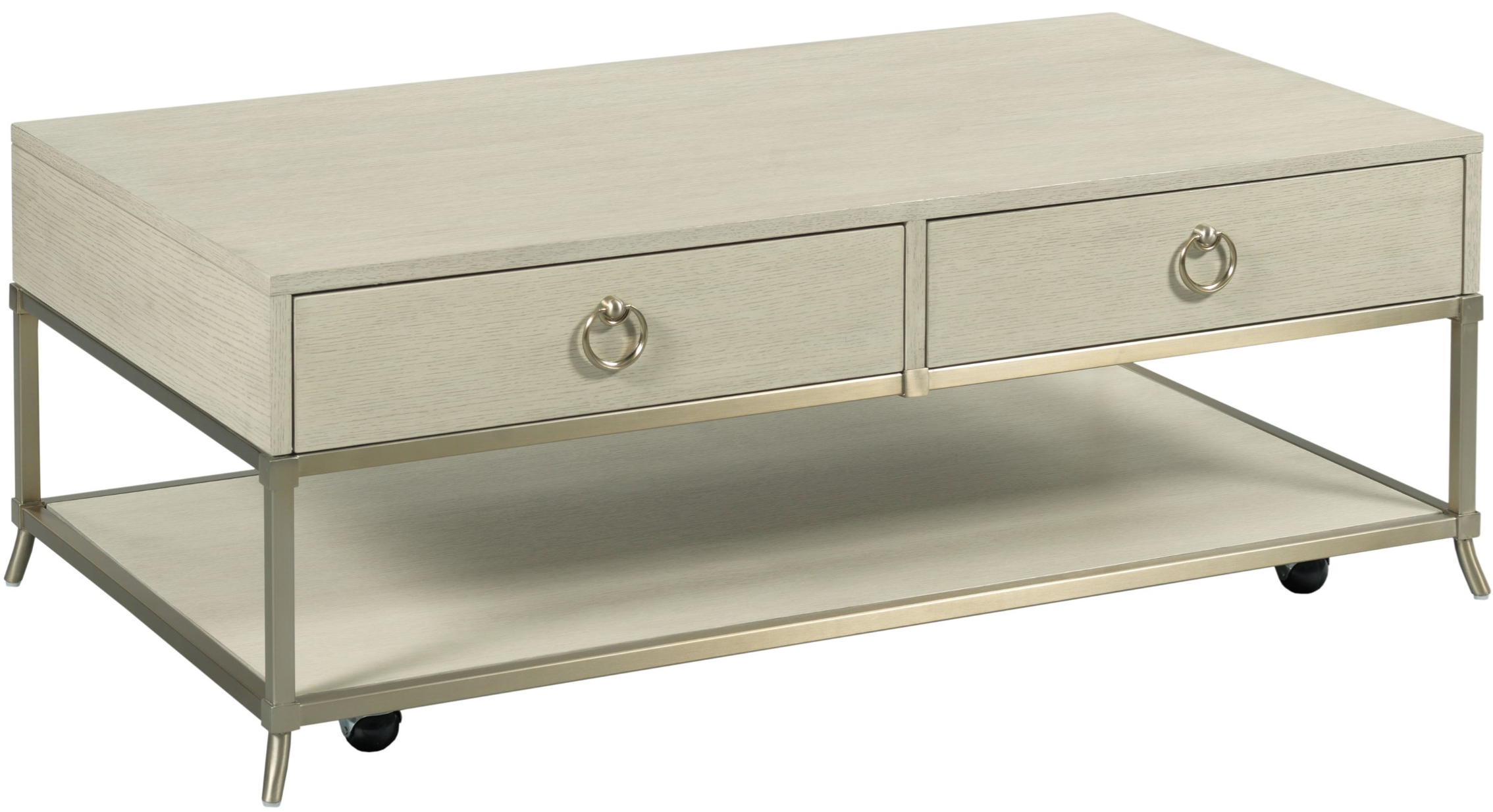 Casually elegant, Lenox features quartered and straight cut white oak veneers in an cream finish. The Westgate Coffee table features two drawers, one fixed shelf and casters. Crafted for durability and versatility, it serves as a stunning centerpiece, enhancing any living space with elegance, practicality, and modern sophistication.Read More
