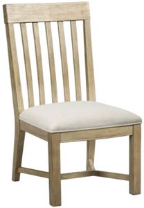 The James Side Chair from the Litchfield collection by American Drew features a slat back will fit nicely with any of the dining tables. Upholstered seat in an ivory fabric and chair is finished in a beautiful driftwood finish.Read More