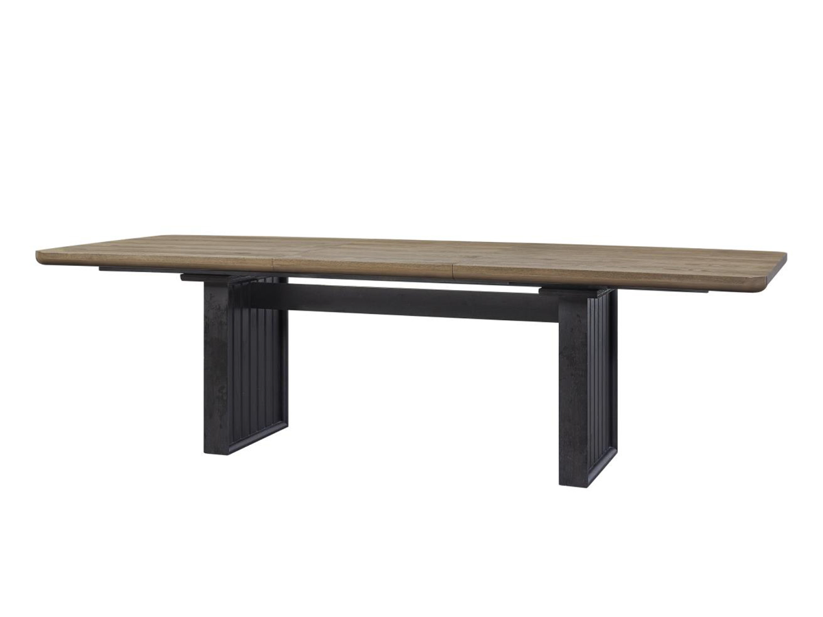 The base features a unique slatted design that adds architectural character without overwhelming the room. A 26-inch extension leaf is included, and the gear-driven leaf system allows for smooth and effortless expansion when hosting guests. This combination of thoughtful craftsmanship and versatile styling makes the August Dining Table a standout centerpiece that adapts to any occasion.
