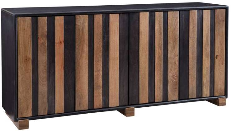 The Adrienne server is a blend of modern design meeting a warm, moody color palette. The doors feature a planking effect with push-clasp hardware, adding character. Inside, find practicality with adjustable shelves and media cord management. Mango wood boasts a naturally textured finish with a charming distressed effect.Read More