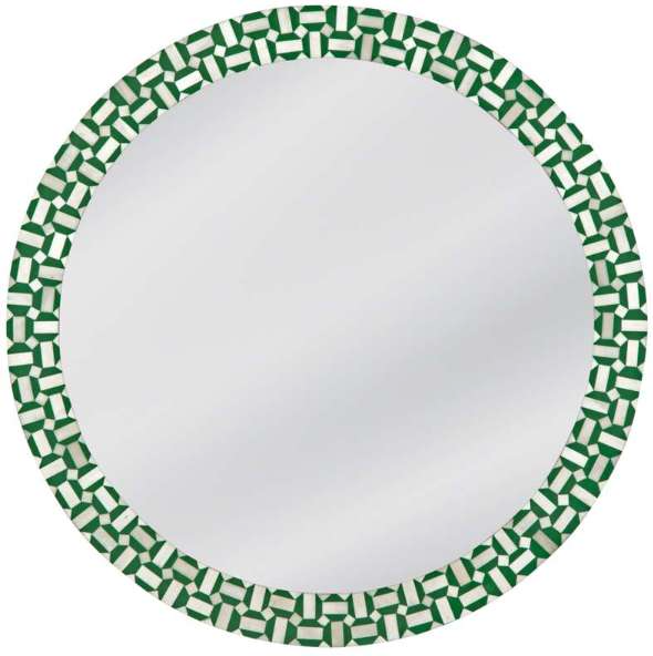 The Alanis Wall Mirror showcases a chic round design, accented with an eye-catching geometric pattern in a vibrant green finish. Its boho-modern aesthetic adds a trendy flair to any space, while the green and cream bone inlay creates a striking contrast for visual appeal.Read More