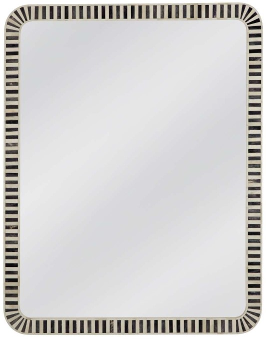 The Cyrus wall mirror presents a sleek and modern design, featuring a rectangular shape with rounded corners. Its chic black frame paired with cream and gray bone accents exudes contemporary elegance, making it a sophisticated addition to any living space. Crafted with attention to detail, this mirror effortlessly enhances your home decor.Read More