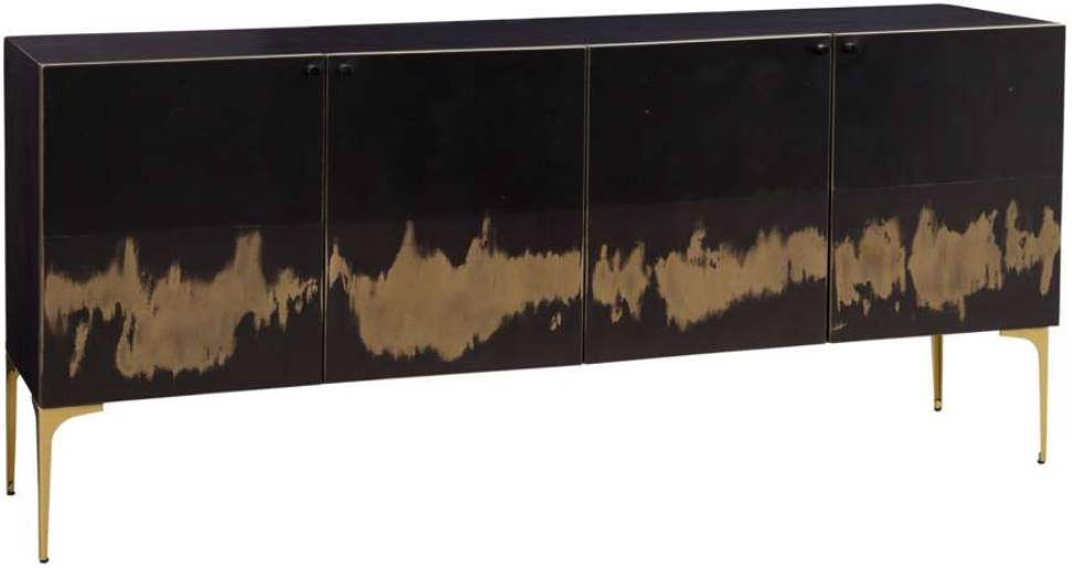 The Kali iron sideboard, where modern luxe meets timeless craftsmanship. Crafted from solid iron, each of its four doors undergoes a unique acid-wash process, resulting in a one-of-a-kind piece. Inside, discover functionality with four shelves and media cord management. Resting on slim tapered legs finished in brushed gold.Read More