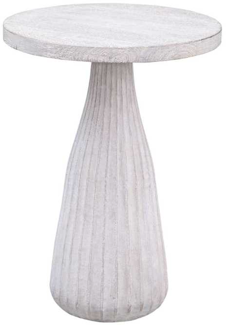 Experience charm of the Aimee accent table, where coastal farmhouse meets refined craftsmanship. Crafted from solid mango, its carved pedestal base in a white-wash finish adds warmth and character to your space.Read More