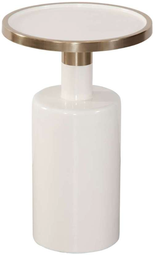 Meet the Brice accent table, a contemporary statement piece in elegant white. Crafted from iron with a sleek painted white finish and chrome accents, this table boasts a clean, glossy look. Its circular shape and the unique chrome finish at the table's edge, extending to the base, offer a touch of modern sophistication.Read More
