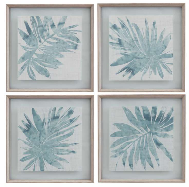 Burlap Ocean Palm is a set of four straight cut prints floating