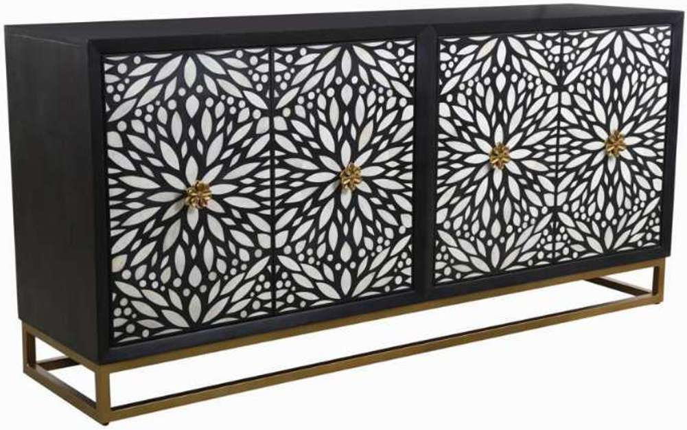 The Cameron Server boasts a striking modern design, featuring a matte black mango wood case frame paired with contrasting bone and resin door fronts. Custom floral-inspired hardware adds a unique touch, enhancing the server's contemporary appeal.Read More