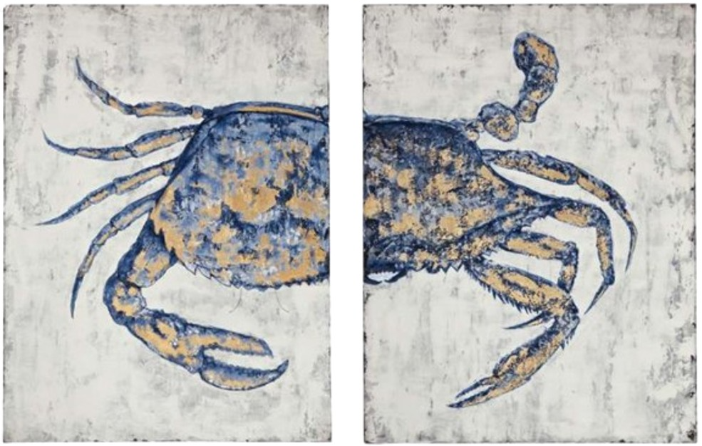 Blue crab is a 2 piece diptych on gallery wrapped canvas that is hand painted. D-ring or sawtooth picture hanging hardware included. This piece of art is hand painted by a skilled artist lending itself to a unique technique and will vary slightly.Read More