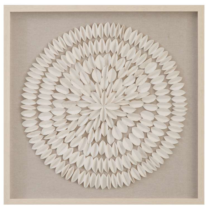 The Donellie Wall Art showcases a neutral organic style, featuring folded rice paper pieces arranged to create a bold round medallion design. The soft linen background adds texture and depth, while the off-white frame complements the piece with a subtle, refined finish.Read More