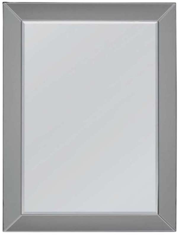 The drew wall mirror is rectangular with a smoked mirror mitered frame