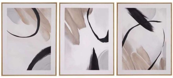 Eartha showcases a set of three hand-painted canvases elegantly framed in luxurious gold molding. This captivating ensemble adds a touch of opulence and sophistication to any space, infusing it with warmth and timeless elegance.Read More
