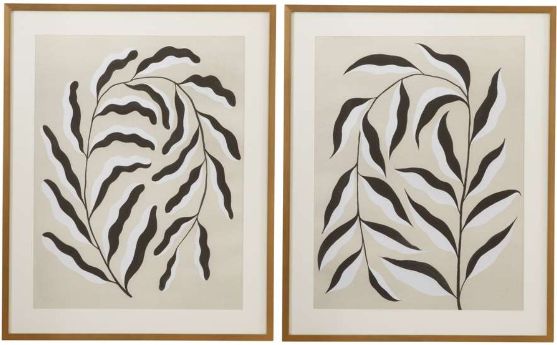 Botanical-inspired prints in black and tan tones