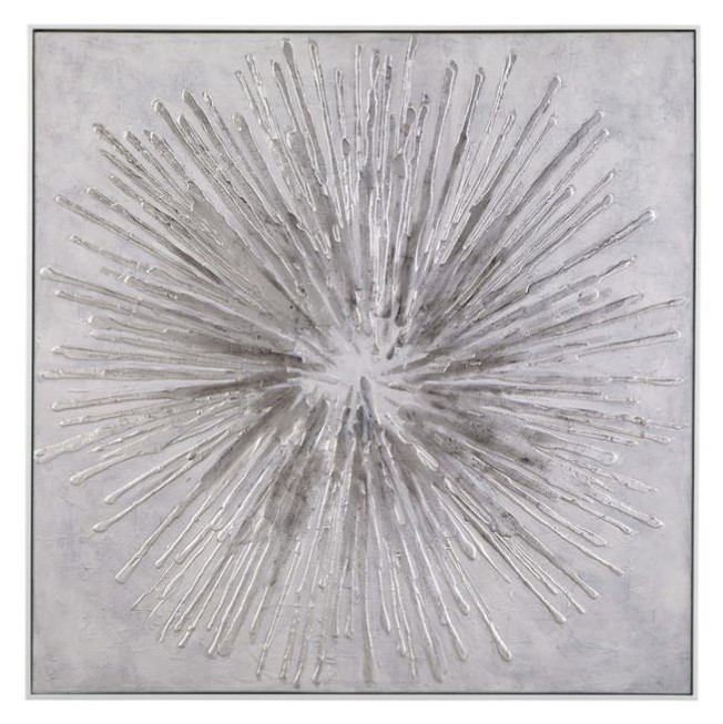 Energy Burst is a hand painted acrylic on canvas in a white frame. D-ring or sawtooth picture hanging hardware included. This piece of art is hand painted by a skilled artist lending itself to a unique technique and will vary slightly.Read More