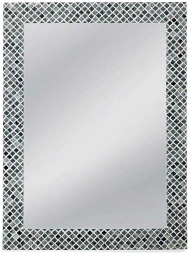 The Henn Wall Mirror is a rectangular mirror with a scalloped lattice pattern frame in white and various shades and tints of gray. Two D ring attachment points for eases of access wall mounting are included to hang the mirror. Fill your space with this stylish wall mirror.Read More