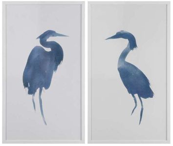 Heron in Blue is a two pieces set that is treated with a pro-texture finish. This sprayed texture gives the print a wonderfully tactile texture, while the lustre finish creates a high style end result. This print features no glass and a 1.25" matte white molding.Read More