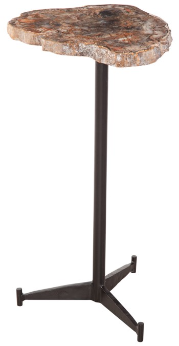 Howe Accent Table features a natural cut petrified wood top with a matte black finished iron base (natural petrified wood tops will vary slightly in shape and size). The hand-crafted details produced by a skilled artist lend themselves to a unique technique and will vary slightly.Read More