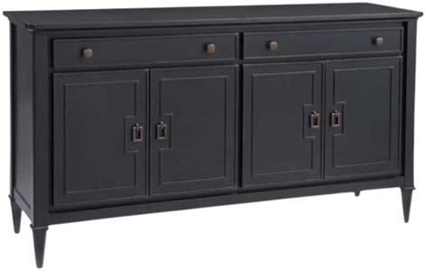 The Hudson Server features an all black finish, with geometric details giving it an Asian flair. This sideboard provides ample storage between the two upper drawers and two cabinets. The top drawers feature black felt lining.Read More
