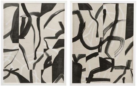 Ink Maze is a set of two prints framed in a 1-3/16" matte white frame. Abstract design in gray, black, and tan. Hanging hardware included, no assembly required, simply mount to wall. Made in the USA, this framed art piece is custom-built.Read More