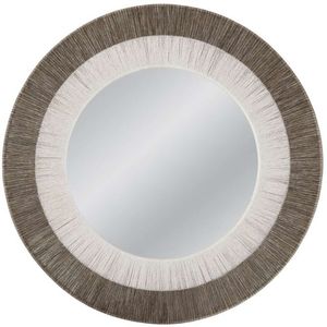 Art deco-inspired round wall mirror with a distinctive gray rope frame