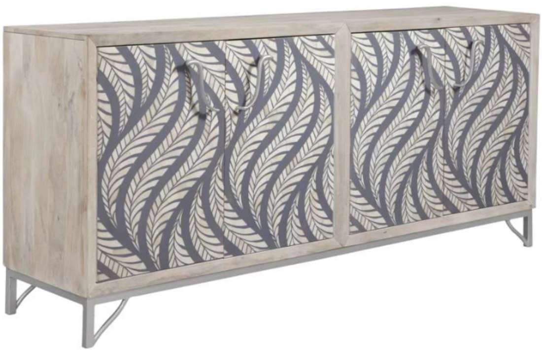 The Leia Server is a stunning modern piece, featuring a solid mango wood case frame finished in a light bleached tone. Its intricately patterned door fronts showcase hand-laid bone and light grey resin, reflecting exceptional craftsmanship.Read More