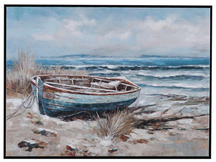 The Mo Bay Framed Canvas captures the serene beauty of a coastal scene, featuring a sailboat on the shore. The design evokes a sense of calm and relaxation, making it an ideal addition to spaces inspired by the beach or ocean.Read More