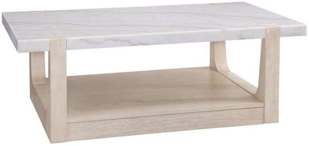 The Newport collection exudes Coastal Modernism, defined by the fresh, airy finish and white marble. Ash veneer in a sun-bleached finish is applied over thick, tapered legs that are exposed through the tops of the marble tabletops.Read More