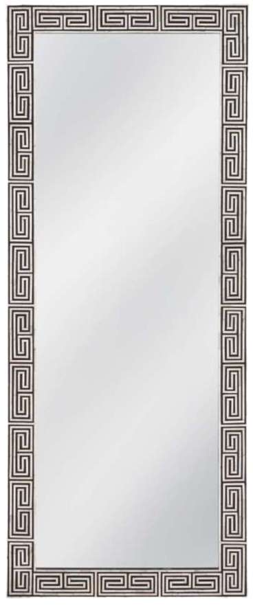 The Newton floor mirror showcases an eye-catching Greek key design crafted from natural and black colored bone, lending it a distinct boho flair. Its intricate geometric pattern adds a touch of sophistication to any space, while the black and natural off-white color palette ensures versatility in complementing various decor styles.Read More