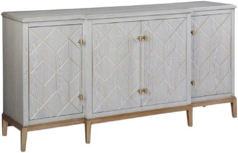 The Portia Server features four door storage with adjustable shelves to store items of all sizes, a cream case with doors that have fretwork with silver highlighting, antique mirror and custom hardware.Read More