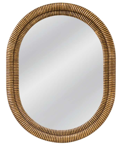 The Santee Wall Mirror presents a modern oval design adorned with intricate carved wood detailing, offering a sophisticated accent to any room. Finished in an antique gold hue, it exudes timeless elegance and adds a touch of luxury to your decor.Read More