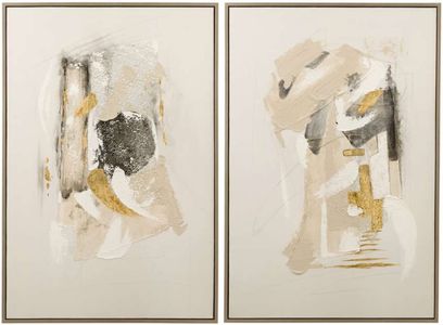 The Spencer Framed Canvas set of 2 exudes modern minimalism with its soft palette and gold accents. Each canvas is wrapped in a sleek canvas.Read More