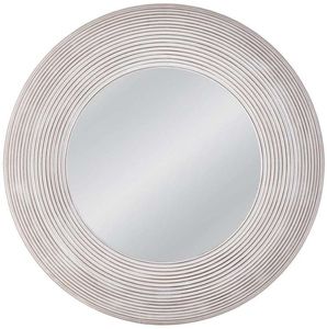 Spin Wall Mirror is a round decorative wall mirror. The wood mirror frame features a white wash finish. Includes two "D" ring attachment points for ease of access for hanging.Read More