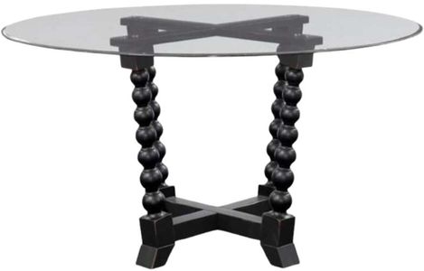 The Susanna Dining table features contemporary modern design inspiration. Features a 54" round, clear glass table top with ofgee edge treatment. Supporting the glass top is an X-style base with overstated spindled legs.Read More
