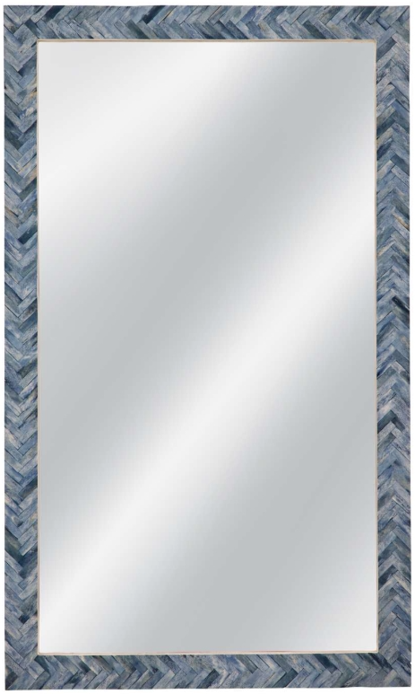 The Sutton Wall Mirror showcases a striking rectangular frame wrapped in blue bone arranged in a refined herringbone pattern. Its bold yet sophisticated design adds a pop of color and texture, making it a standout accent in modern, coastal, or eclectic spaces.Read More