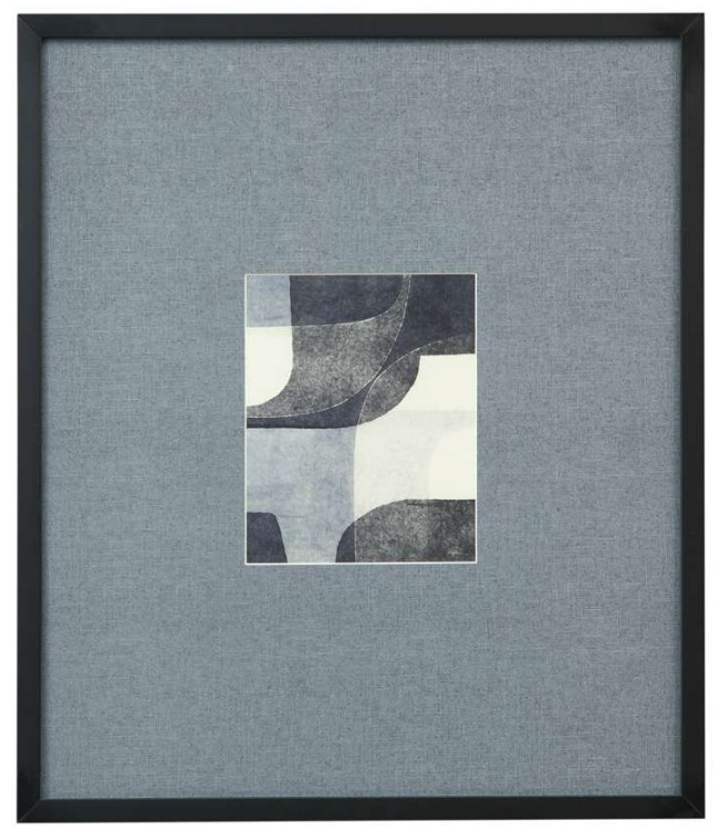 This print is framed in a 7/8" matte black frame with an oversized gray matboard