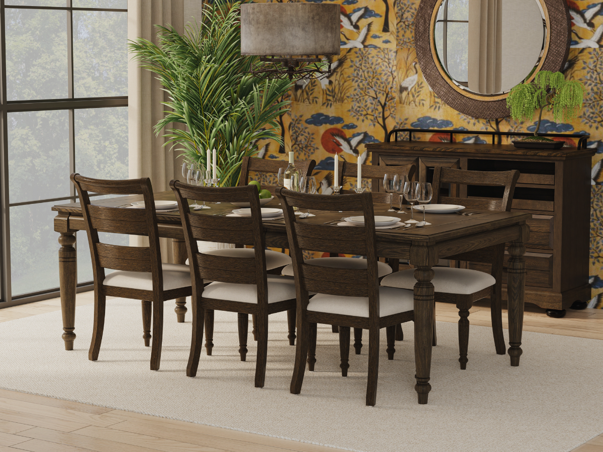 The Bella Dining Set combines timeless style, everyday functionality, and exceptional value for a complete dining room upgrade. Crafted from brown elm solids and veneers with a warm coffee finish, this set includes the elegant Bella Dining Table and six Bella Side Chairs. The table features a classic standard-height design and a convenient 18-inch removable leaf, making it easy to expand for family gatherings or dinner parties. Its rich finish and clean lines offer a versatile look that complements rustic, transitional, and traditional décor.Read More