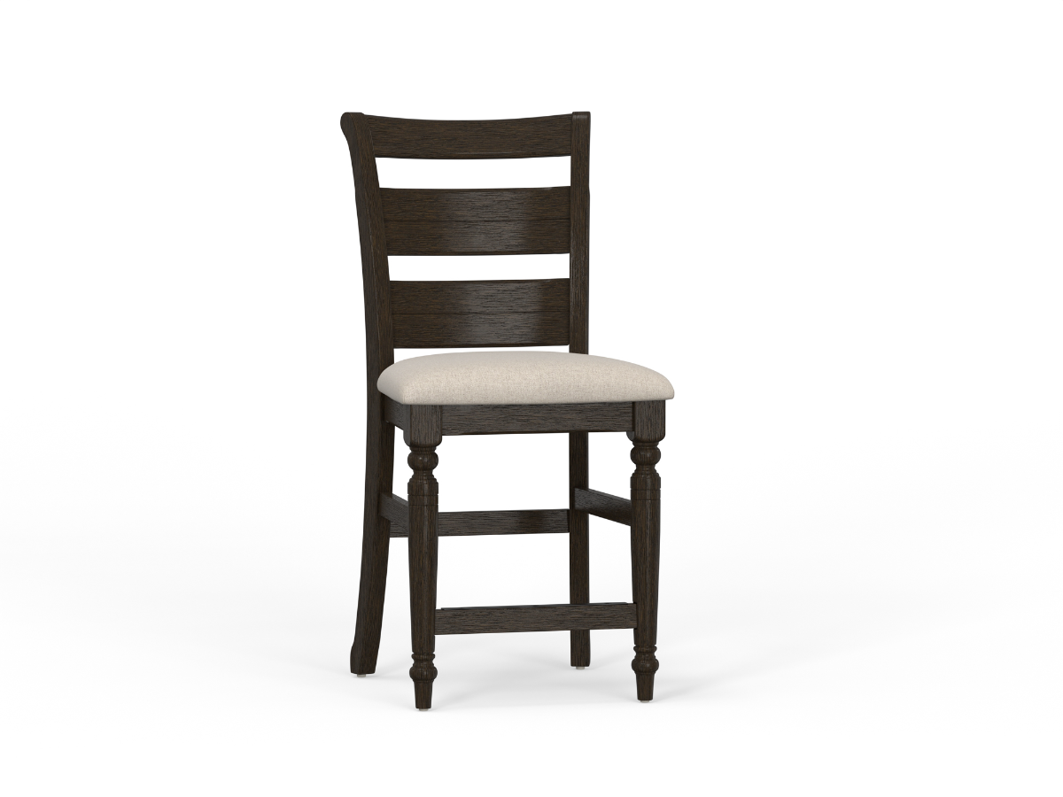 The Bella Pub Chair delivers elevated style and comfort to your dining or entertainment area. Designed to complement a counter-height or pub-height table, this chair is crafted from brown elm solids and veneers for dependable strength and durability. The coffee finish offers a deep, rich tone that adds sophistication to your space, while the ladder back design introduces a classic element that blends seamlessly with a variety of décor styles.Read More