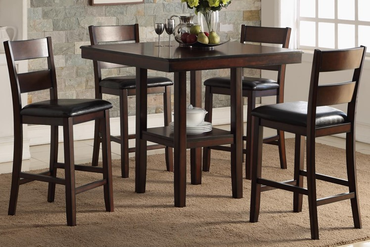 Complete your dining room idea with this Cromwell 5 Piece Counter Dining Set, features a four upholstered dining chairs and a table in brown finish. Update your space with style and functionality by incorporating this set into your dining area.Read More