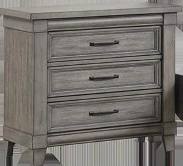 The sturdy wood construction and distressed gray finish lend a rustic charm, while the sleek metal hardware adds a contemporary touch. This nightstand is both functional and stylish, making it a versatile addition to any bedroom setup.