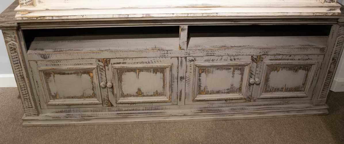 Have space for television when you choose this rubbed gray television stand from Bernards. Shown in rubbed gray finish, it has two doors and two shelves. Add an elegant touch to your home and ensure that you can keep organized with this television stand unit.Read More