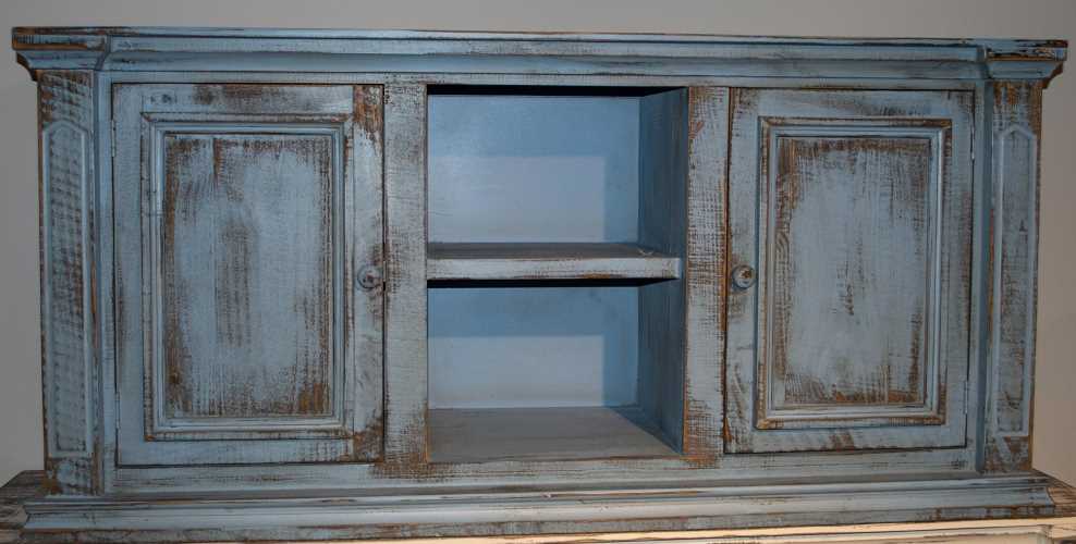 Have space for television when you choose this rubbed green television stand from Bernards. Shown in rubbed green finish, it has two doors and two shelves. Add an elegant touch to your home and ensure that you can keep organized with this television stand unit.Read More