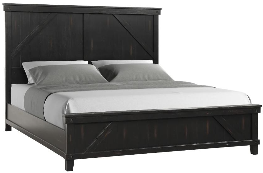This bed features a bold and rustic design with a distressed black finish, giving it a modern farmhouse appeal. The high, paneled headboard is detailed with a classic farmhouse element, while the matching low footboard provides a balanced look. Constructed with sturdy wood, this bed exudes durability and timeless style.Read More