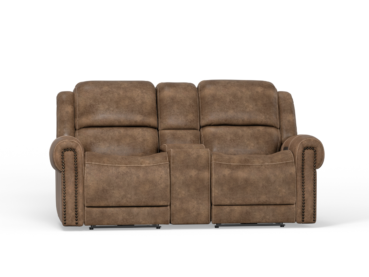 The Bettie Triple Power Console Loveseat brings together refined design and ultimate functionality for a luxurious seating experience. Upholstered in light brown polyester faux leather, it offers a sophisticated look and soft, durable comfort. The triple power mechanism allows for personalized relaxation with adjustable headrest, lumbar support, and recline functions, all controlled by a one-touch home button on the inside arm. A central storage console features USB and Power Management, keeping your essentials organized and devices charged, while built-in cup holders add convenience for movie nights or lounging. Elegant nailhead trim and padded outside arms enhance the loveseat’s timeless appeal, making the Bettie Triple Power Console Loveseat a perfect addition to your living space.