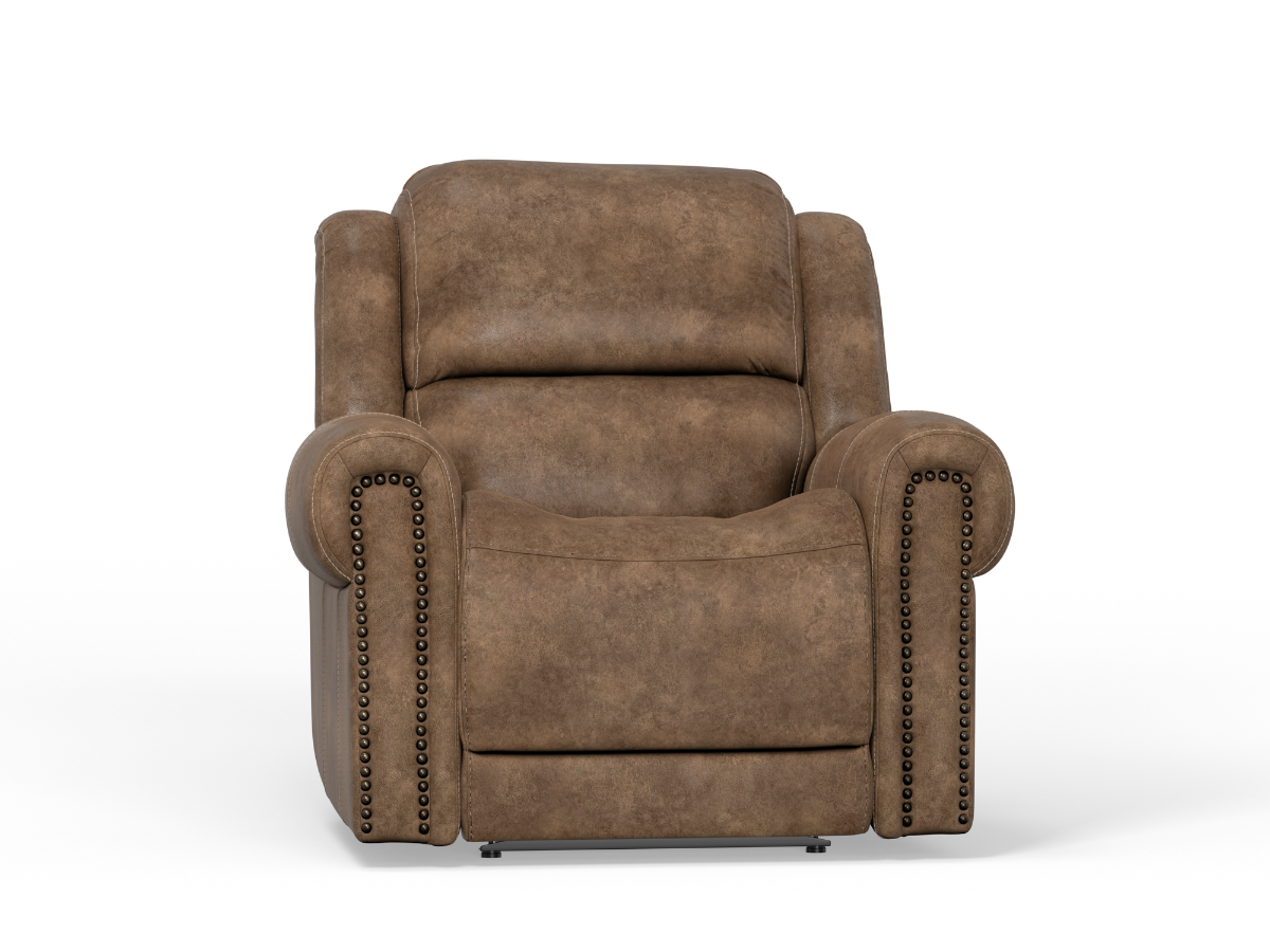 The Bettie Power Recliner offers unmatched comfort and timeless elegance, making it a standout piece for your living space. Upholstered in light brown polyester faux leather, it provides the luxurious look and soft feel of genuine leather with enhanced durability. The triple power mechanism lets you customize your relaxation with adjustable headrest, lumbar support, and recline functions, all controlled with ease using a one-touch home button on the inside arm. USB Type A and C ports on the power switches ensure your devices stay charged and within reach. Finished with nailhead trim and padded outside arms, this recliner exudes classic sophistication while delivering modern comfort. Perfect for unwinding, the Bettie Power Recliner is a stylish and functional addition to any room.