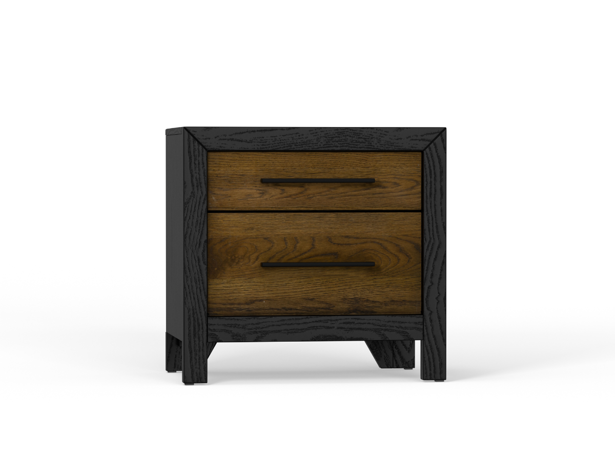 The Blair Nightstand brings sleek, modern style and practical convenience right to your bedside. Featuring a bold charcoal-colored frame accented by two brown wood drawer fronts, this nightstand offers striking contrast and clean, contemporary lines. Black hardware adds a sharp, minimalist touch, while a built-in touch light runs just above the top drawer, tucked beneath the black frame for soft, subtle illumination at night.Read More