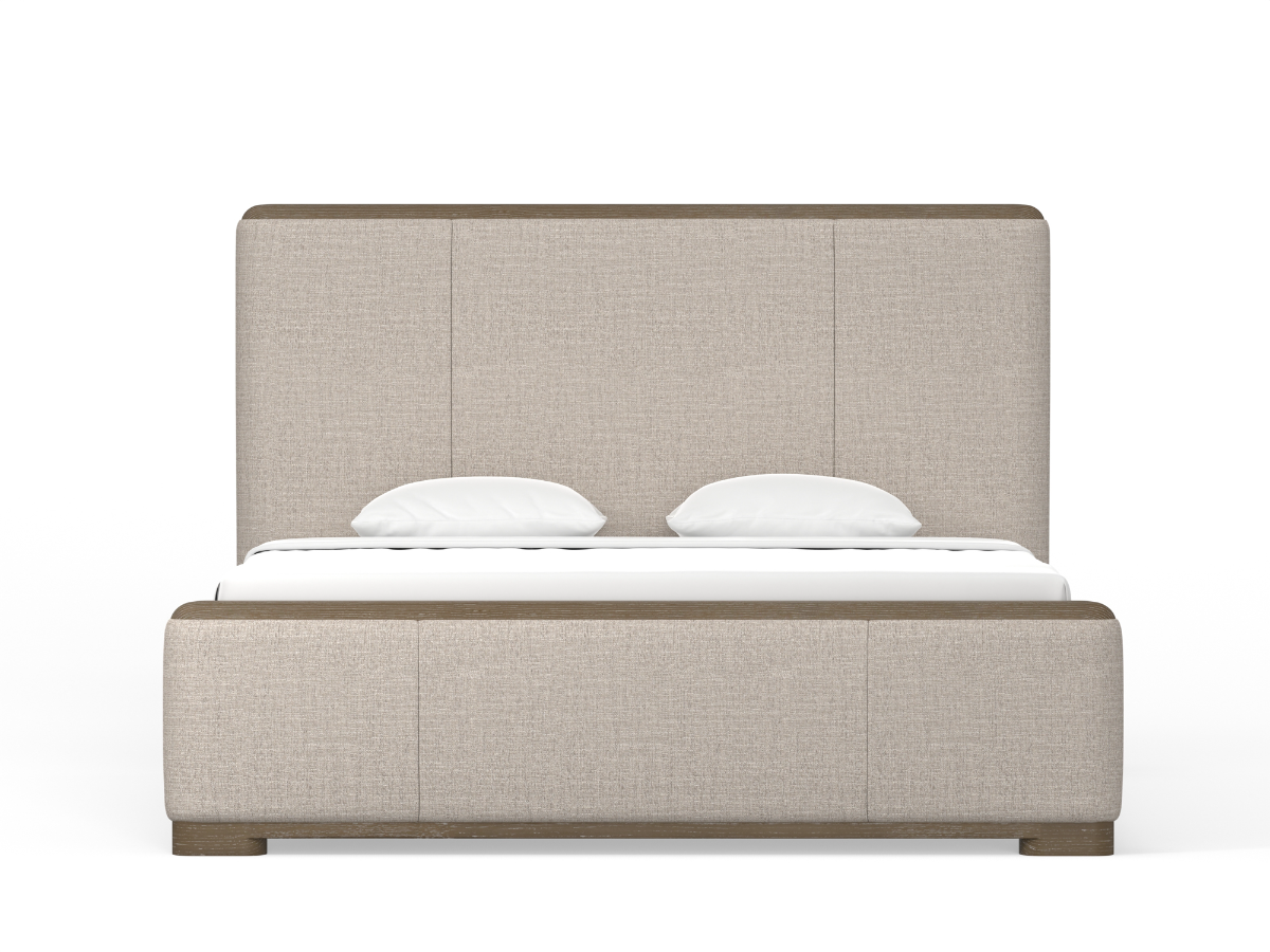 The Blanchard Bed brings a soft, inviting style to your bedroom with its combination of upholstery and wood accents. Available in king or queen sizes, this bed features a light cream upholstered headboard and footboard that create a warm and welcoming atmosphere. The gray-washed wood trim on the top and bottom of both the headboard and footboard adds contrast and texture, while soft rounded corners enhance its approachable, elegant design. Perfect for both contemporary and transitional spaces, the Blanchard Bed is a versatile centerpiece that balances comfort and style.Read More