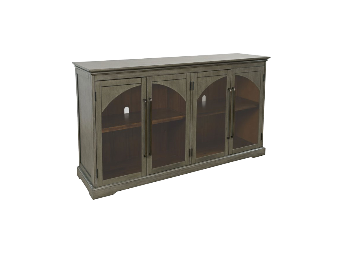 The Brady Grey 65" Console is a striking and functional addition to your entertainment area. With its sleek grey finish, this console exudes a sophisticated appeal that complements any modern decor. The console features four doors adorned with arched glass windows, offering a glimpse of the contents inside while adding an elegant touch to the design. Inside, you'll find two shelves that provide ample space to store media devices, gaming consoles, and other entertainment essentials. The dark metal hardware adds a touch of contrast to the overall look, enhancing the console's visual appeal. Moreover, the light contrasting interior wood creates a stunning backdrop for your entertainment equipment. Whether you're watching movies, gaming, or simply displaying decor, the Brady Grey 65" Console effortlessly combines style and functionality to elevate your living space.Read More