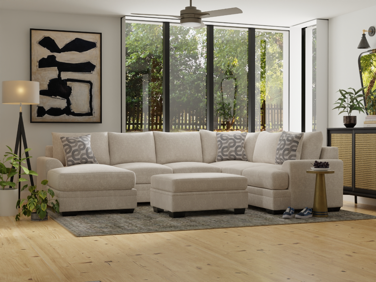 There's no bad seat in the house with the cozy Brady 2-piece sectional from Behold. With oversized scale, deep seat cushions and chaise seating, this sectional sofa has everything you want to create your dream space. This sectional comes with the Brady storage ottoman for convenient storage and to complete the look, while adding a warm inviting look to your living room!