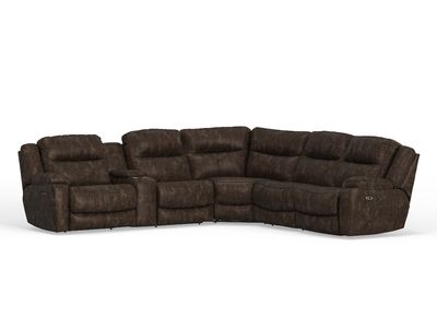 The Brynn Sectional offers the ultimate combination of comfort, technology, and style in a spacious 6 piece design. Upholstered in a warm brown polyester fabric, this power reclining sectional features plush Wow Gel Foam seating and forever foam cushions for long-lasting comfort and support. Built in the USA with quality craftsmanship, each seat is designed with a Gravity Glide mechanism for smooth manual motion and power headrests for customizable relaxation.Read More