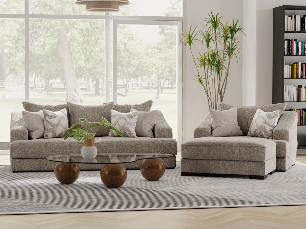 Complete set includes sofa, oversized chair, and ottoman
